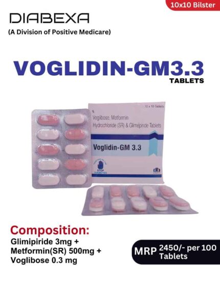 VOGLIDIN M.3 contains Voglibose 0.3 mg + Metformin 500 mg, a dual-action combination designed to...