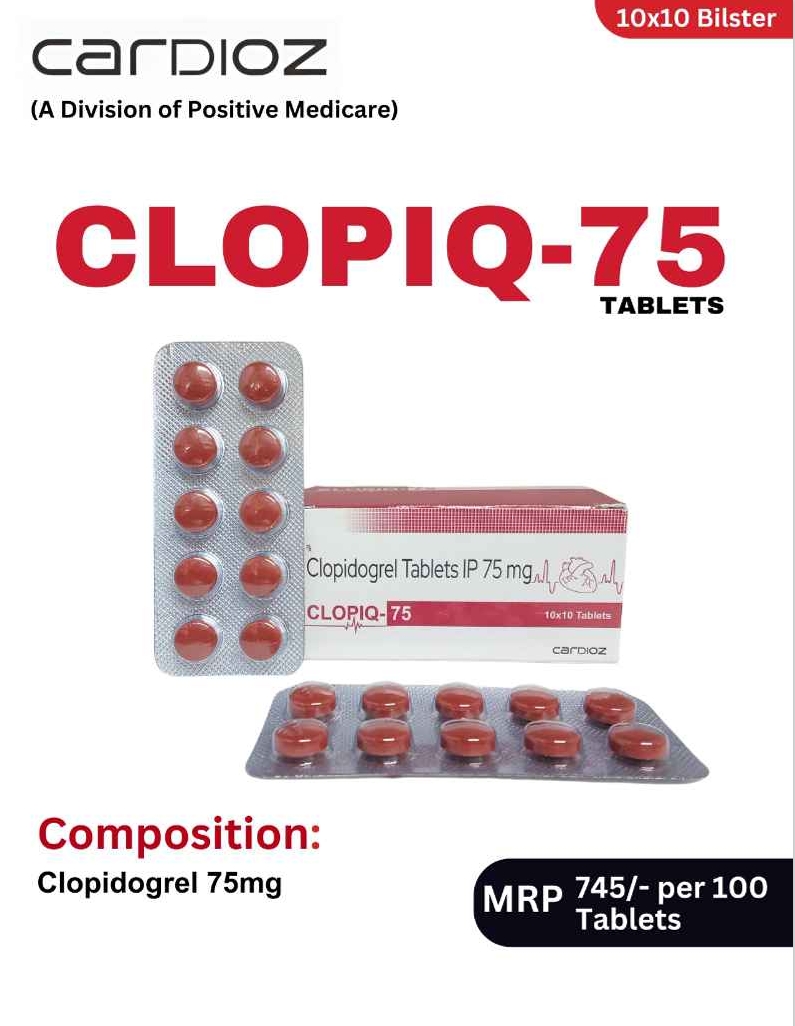 CLOPIQ 75 contains Clopidogrel 75 mg, an antiplatelet medicine used to prevent blood clot formation. It works by inhibiting platelet aggregation, helping maintain smooth blood flow in the arteries. It is commonly prescribed in patients with heart disease, especially after angioplasty or stent placement. Regular use reduces the risk of heart attack and stroke and supports long-term cardiovascular protection under medical supervision.