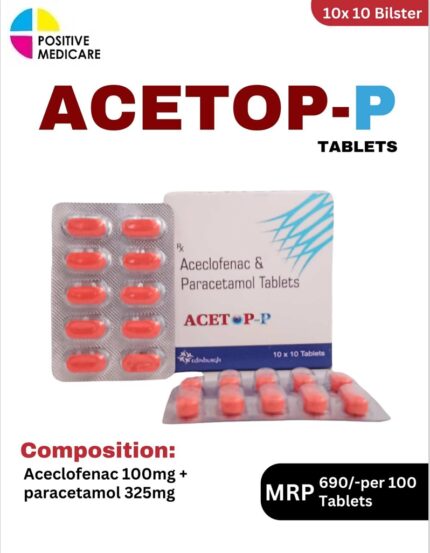 ACETOP P contains Aceclofenac 100 mg + Paracetamol 325 mg, a widely used combination for...