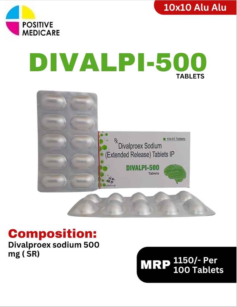 DIVALPI 500 contains Divalproex Sodium 500 mg (Sustained Release), an anticonvulsant used to manage epilepsy, bipolar disorder, and migraine prevention. It works by stabilizing electrical activity in the brain, helping control seizures and mood swings. The sustained-release formulation ensures steady drug levels for prolonged action, improving compliance and effectiveness in long-term neurological and psychiatric conditions.