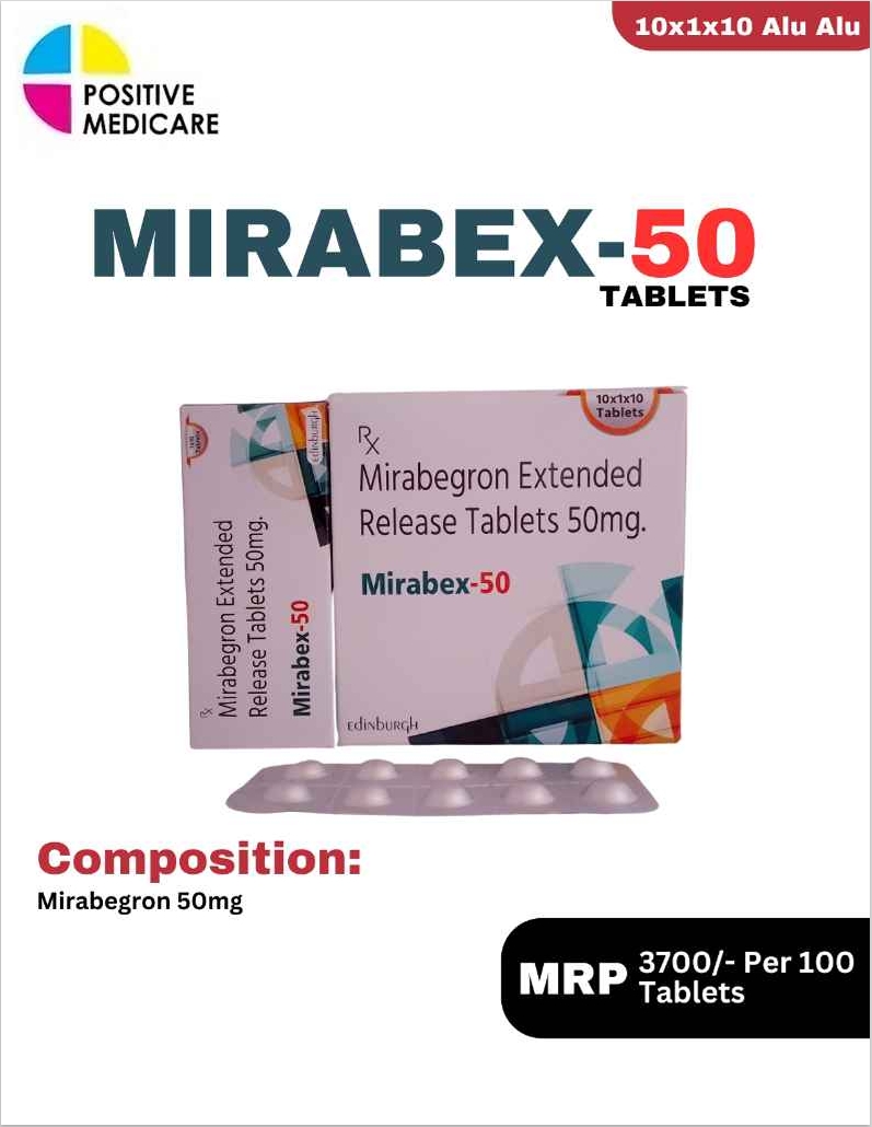 MIRABEX 50 contains Mirabegron 50 mg, used in the management of overactive bladder (OAB). It works by stimulating beta-3 receptors in the bladder, leading to relaxation of bladder muscles and increased storage capacity. This helps reduce symptoms like urgency, frequent urination, and urge incontinence. It provides effective, long-lasting control and is well suited for patients needing a higher strength for better symptom management.
