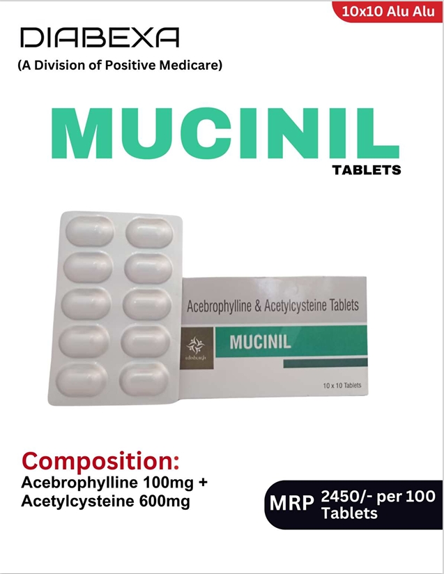MUCINIL TAB contains N-Acetyl Cysteine 150 mg + Taurine 500 mg, a supportive formulation commonly used in diabetic care to help protect nerve health and reduce oxidative stress. N-Acetyl Cysteine acts as an antioxidant, while Taurine supports cellular function and metabolic balance. This combination is often recommended to support diabetic neuropathy management and improve overall nerve nourishment in patients with long-term diabetes