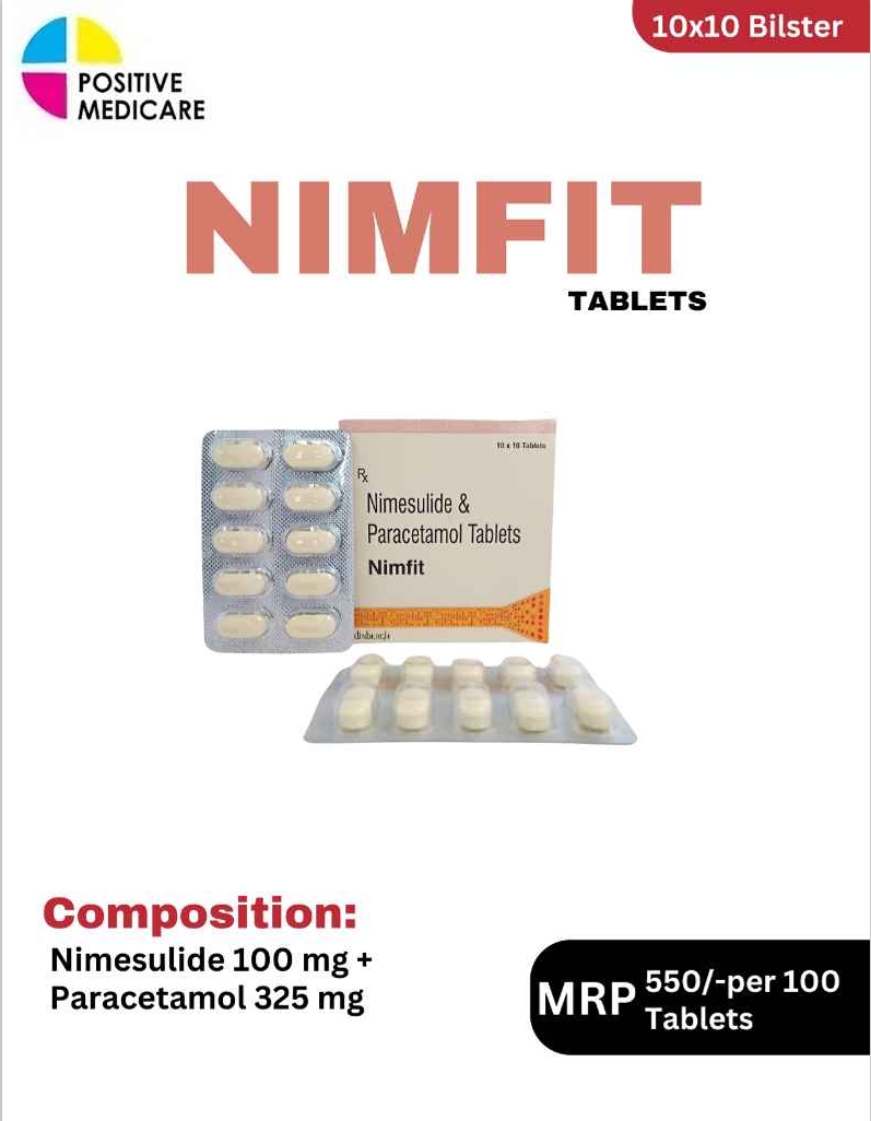 NIMFIT is a balanced combination for effective relief from pain, inflammation, and fever. It contains Nimesulide 100 mg to reduce inflammation and Paracetamol 325 mg to enhance analgesic and antipyretic action. This combination is commonly used in conditions like joint pain, headache, dental pain, and acute musculoskeletal discomfort, helping patients experience quick and reliable relief.