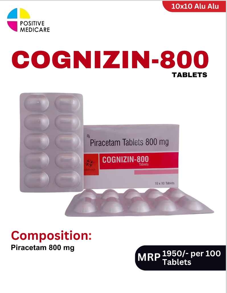 COGNIZEN-800 contains Piracetam 800 mg, a well-known nootropic agent used to enhance cognitive function and brain performance. It works by improving blood flow and oxygen supply to the brain, supporting better memory, learning, and concentration. It is commonly prescribed in conditions like memory loss, vertigo, and cognitive decline, helping improve mental clarity and overall neurological function.