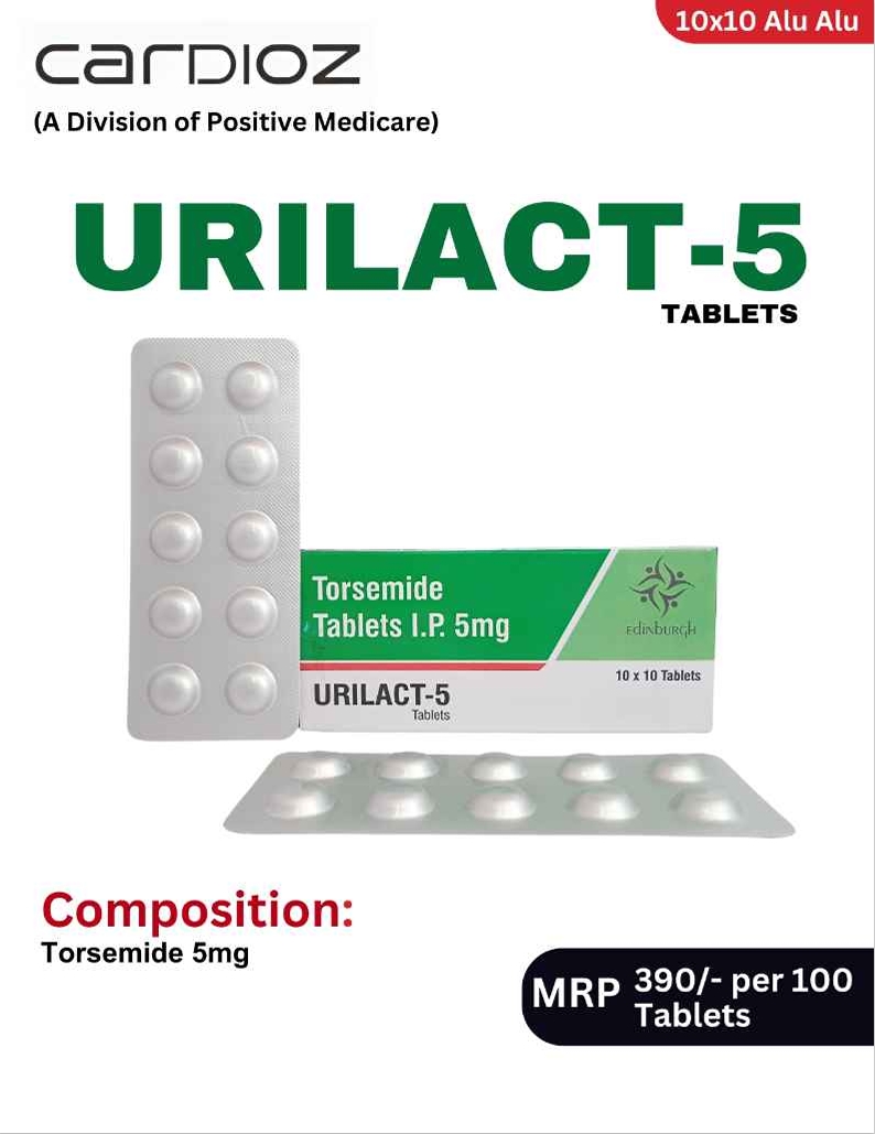 Urilact 5 is a mild and effective diuretic used to manage fluid retention and support blood pressure control. It contains Torsemide 5 mg, which works by increasing urine output to remove excess fluid from the body. This helps reduce swelling, puffiness, and breathlessness. It is suitable for patients needing gentle diuretic therapy in conditions like early edema, hypertension, and heart-related fluid imbalance.