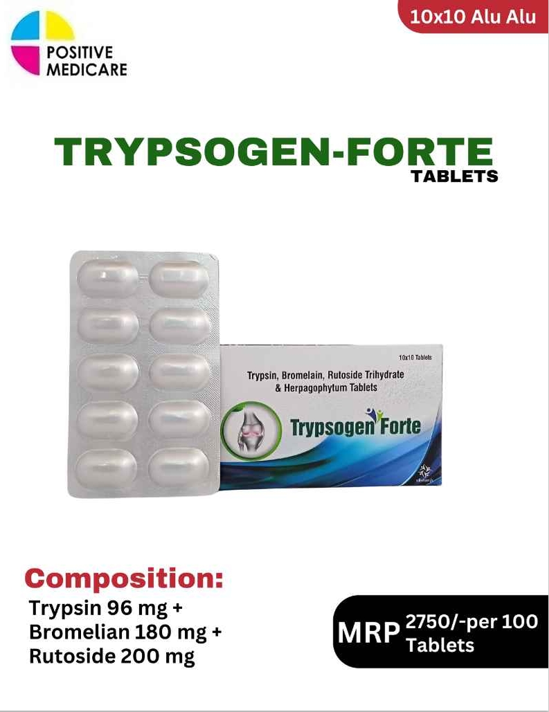 TRYPSOGEN FORTE is a potent enzyme-based formulation that supports faster healing and reduces inflammation. It contains Trypsin 96 mg and Bromelain 180 mg to help break down inflammatory proteins and reduce swelling, along with Rutoside 200 mg to improve capillary strength and minimize edema. This combination is especially useful in injuries, post-operative recovery, and soft tissue inflammation, promoting quicker and more comfortable healing.