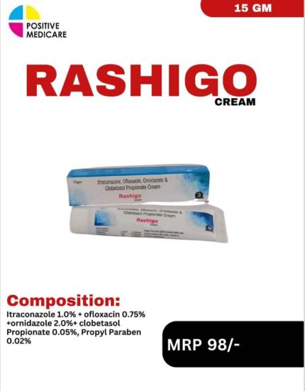 RASHIGO Cream contains Itraconazole 1.0% + Ofloxacin 0.75% + Ornidazole 2.0% + Clobetasol Propionate 0.05%...