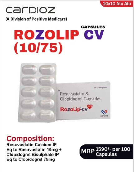 ROZOLIP CV 10/75 contains Rosuvastatin 10 mg + Clopidogrel 75 mg, a combination used for...